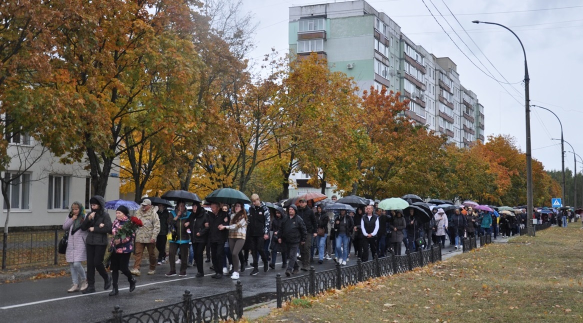 Попри безперервний дощ, сьогодні, 15 жовтня, нетішинці стали навколішки перед жалобним кортежем, щоб гідно віддати останню шану загиблому захиснику України - Андрію Мачулянському. Воїн героїчно загинув 30 серпня 2023 року, захищаючи державний кордон в Сумській області. Указом Президента України йому посмертно присвоєно звання Герой України.